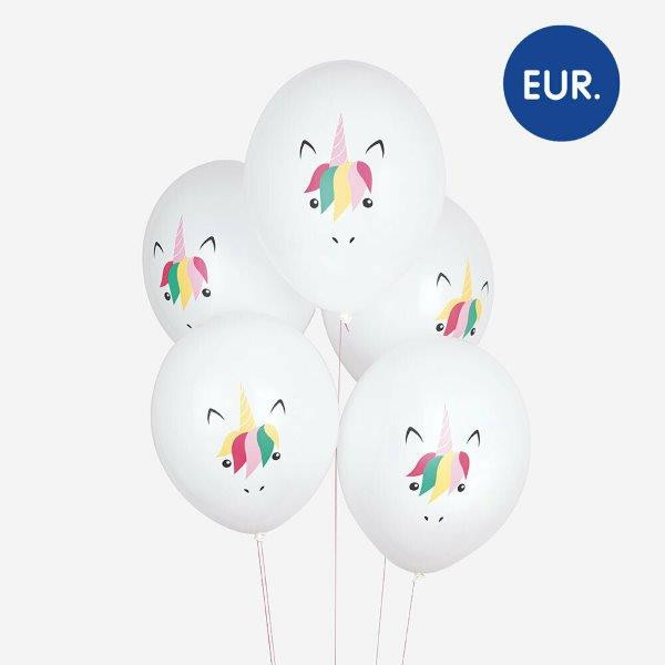 Conjunto de 5 balões de latex da coleção mini unicórnio com 32cm de diâmetro. Pode encher com hélio ou ar.