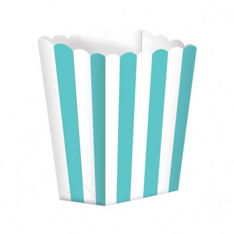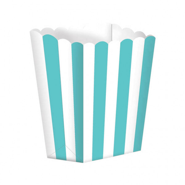 Pack de 5 baldes de cartão para pipocas às riscas em azul turquesa e branco para as sessões de cinema em casa ou para as festas de aniversário.