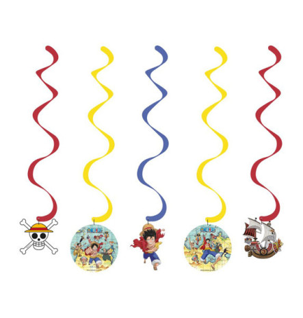 Conjunto de cinco espirais decorativas do One Piece para decoração da tua festa de aniversário do mesmo tema.