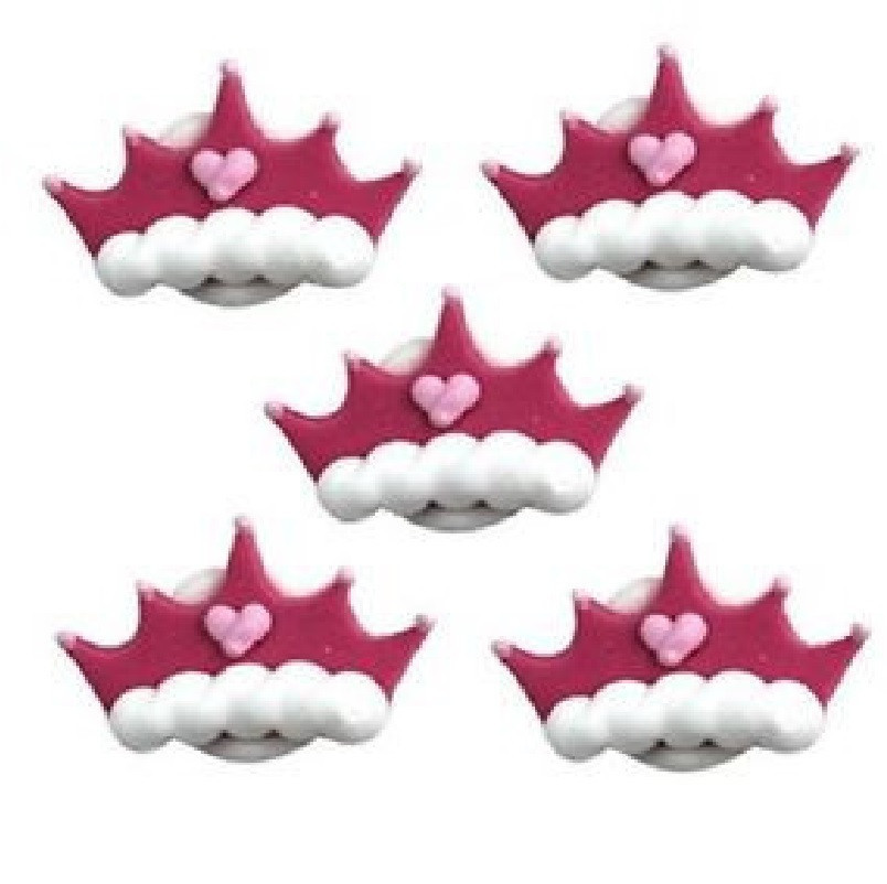 Pack 5 toppers artesanais feitos em açúcar para decoração de bolos, com motivo de Coroas de Princesas