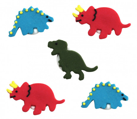 Discos comestiveis de açúcar para utilizar como toppers em cupcakes ou decorar bolos de aniversário no tema de festas dinossauros.