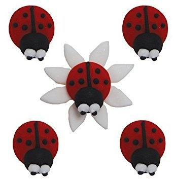 Pack 5 toppers artesanais feitos em açúcar para decoração de bolos sob o tema Joaninha.
