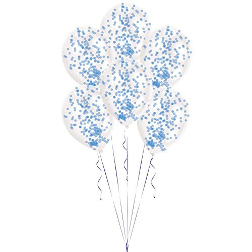 Conjunto de 6 balões transparentes de latex com confettis azuis para colorir qualquer festa.