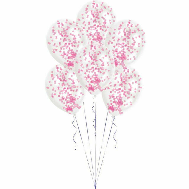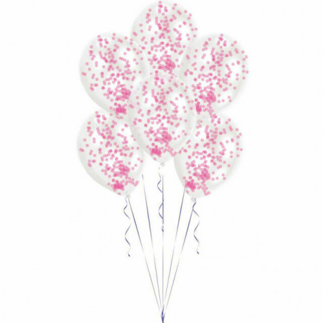 Conjunto de 6 balões transparentes de latex com confettis cor de rosa para colorir qualquer festa.