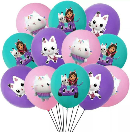 Conjunto de 6 balões de latex com imagens impressas da Casa de Bonecas da Gabby.