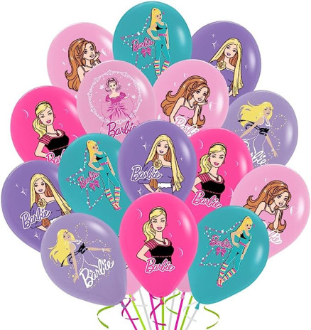 Conjunto de 6 balões de latex com imagens impressas da Barbie. Disponível em modelos sortidos.
