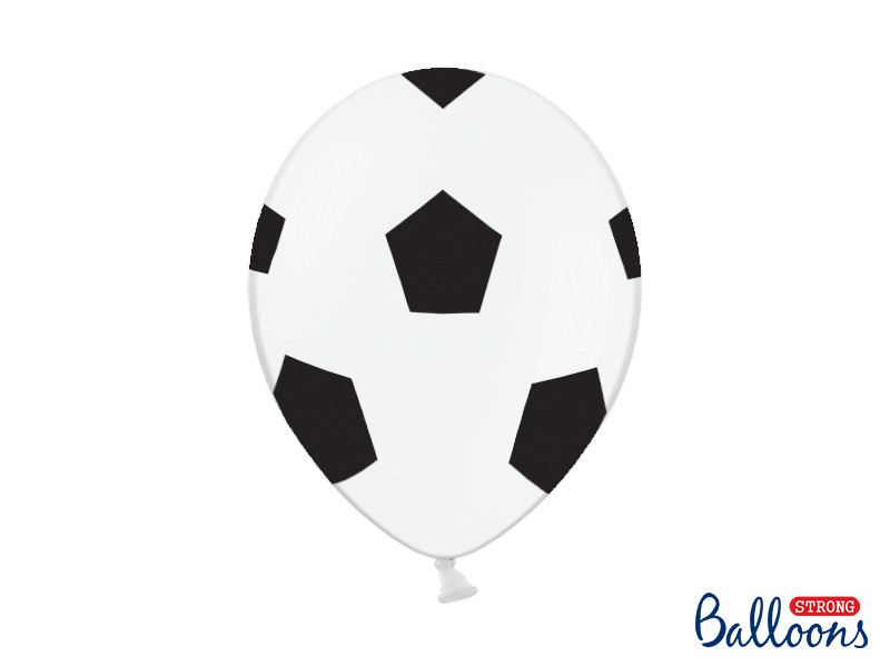 Embalagem de 6 balões de latex com impressão de bola de futebol para as festas de aniversário do tema futebol.