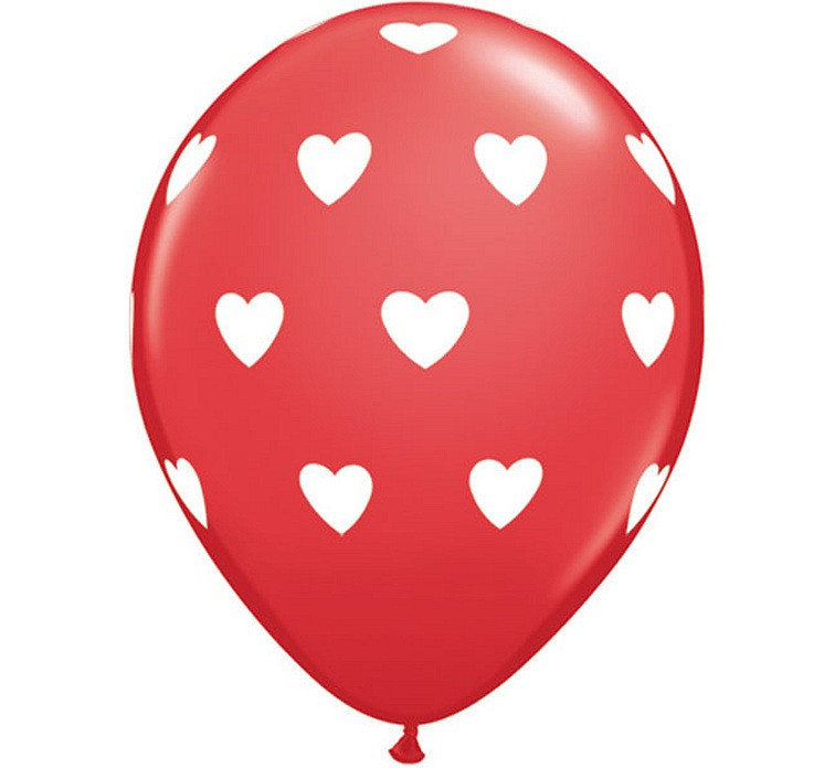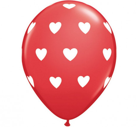 Conjunto de 6 balões de latéx da Qualatex com corações em vermelho, ideal para o dia dos namorados ou qualquer evento amoroso.
