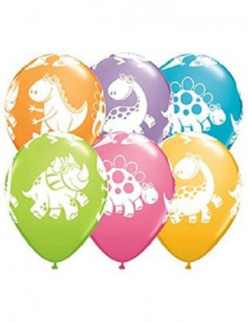 Conjunto de 6 balões de dinossauros, com impressões de vários dinos, para o teu aniversário com o mesmo tema. Cores sortidas.