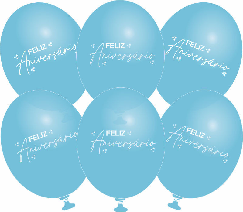 Balões de látex para decoração de festa de Aniversário. Inclui 6 balões rosa bebé de 30cm com impressão Feliz Aniversário a 2 lados. Balões 100% látex de seiva natural biodegradável, indicados para enchimento a hélio ou ar. Impressos em Portugal.