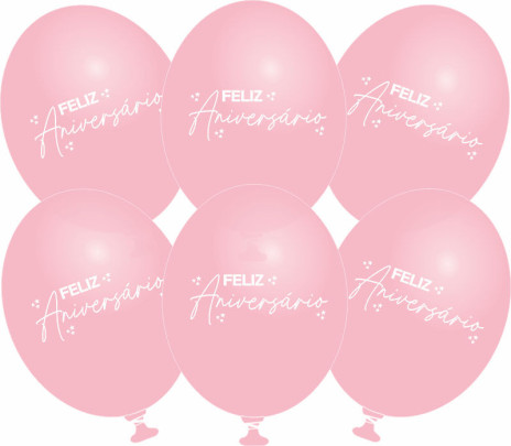 6 Balões Látex Feliz Aniversário Rosa Bebé
