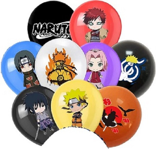 Conjunto de 6 balões de latex sortidos, disponível com imagens sortidas para festa de aniversário com o tema do Naruto.