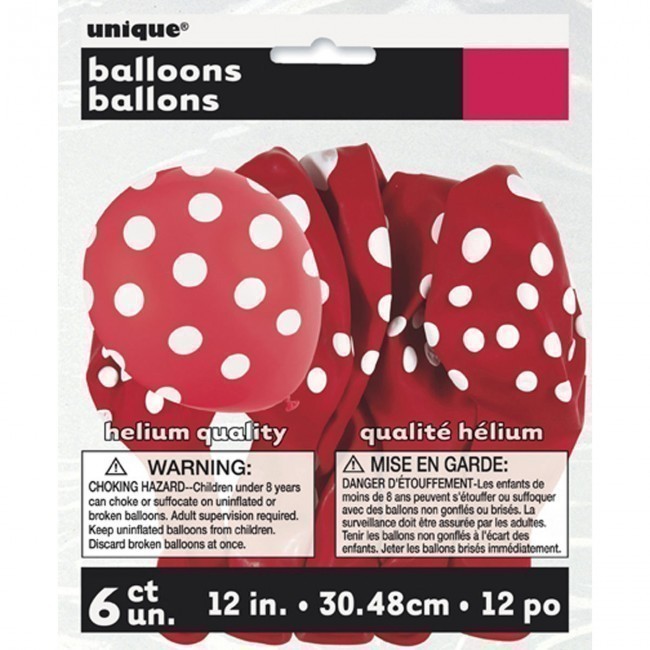 Pack de 6 balões vermelhos em látex de 30 cm.