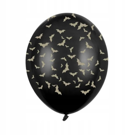 Conjunto de 6 balões de latex em preto com pequenos morcegos para decorar a sua festa de Halloween.