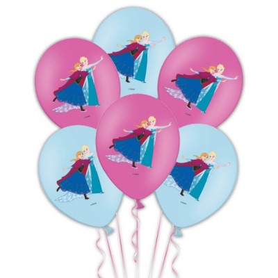 Balões de látex com ilustrações do filme Frozen com as irmãs Elsa e Anna.