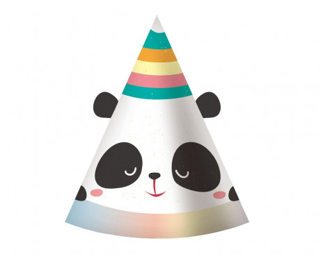 Conjunto de 6 chapéus cone em cartão com elástico para a tua festa de aniversário da coleção Dreamy Panda. Com as orelhinhas do Panda salientes.