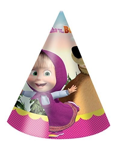 6 chapéus cone da Masha e do seu amigo Urso, para as tuas festas serem ainda mais divertidas.