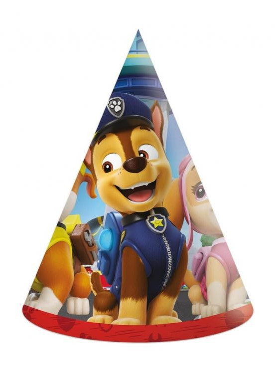Conjunto de 6 chapéus cone para festa da Paw Patrol para os teus convidados estarem a rigor.