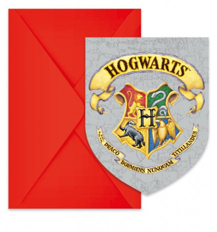 Conjunto de 6 convites de festa Harry Potter, ideais para convidares os amigos para as tuas festas de aniversário. Com envelopes.