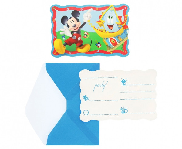 Conjunto de 6 convites do Mickey da Disney, ideais para convidares os amigos para as tuas festas de aniversário. Com envelopes.