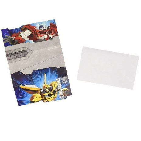 Conjunto de 6 convites dos Transformers, ideais para convidares os amigos para as tuas festas de aniversário. Com envelopes.