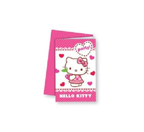 Conjunto de 6 convites com envelope em cor de rosa da Hello Kitty, para a tua festa de aniversário.