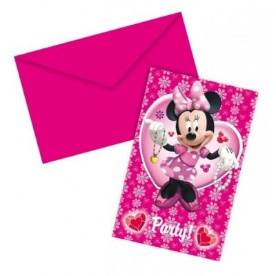 Pack de 6 lindissimos convites de aniversário com envelope da Minnie Mouse.