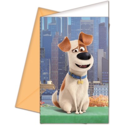 Embalagem com 8 convites+envelope dos irresistiveis animais do filme Secret Life of Pets - A Vida Secreta dos Nossos Bichos. Dimensão: 9x14cm.