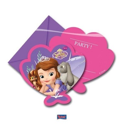 Pack de 6 convites para festa de aniversário em formato concha da Princesa Sofia da Disney