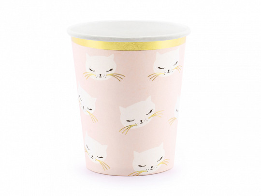 Conjunto de 6 copos em papel da coleção da gatinha para decoração da tua festa de aniversário.