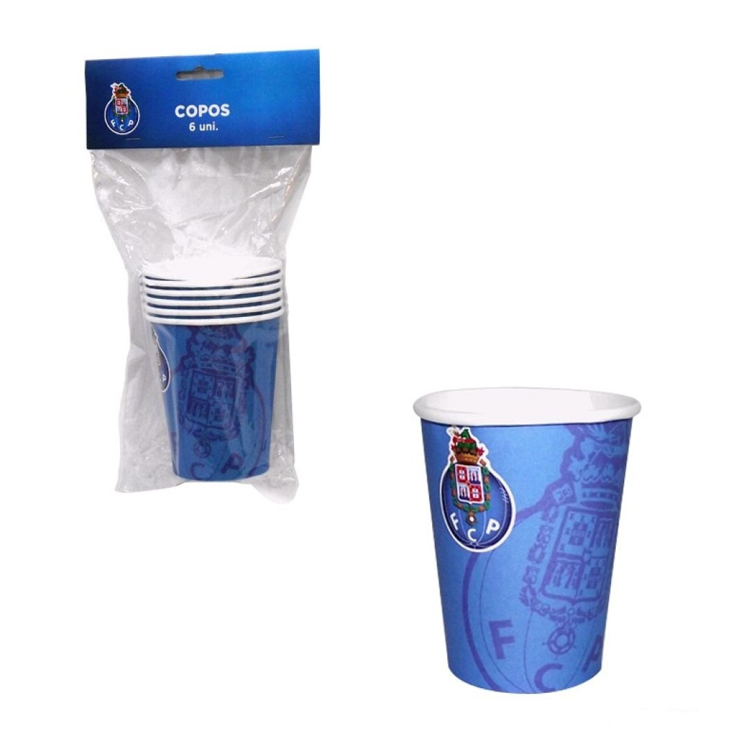 Conjunto de 6 copos de papel do Futebol Clube do Porto. Ideal para decorar a sua festa de aniversário com o tema do seu clube.