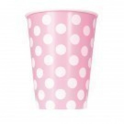 Pack de 6 copos descartáveis na cor Rosa claro com bolinhas brancas