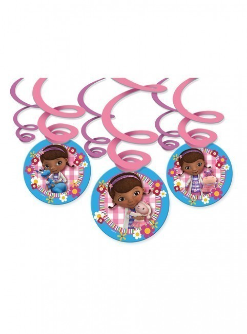 Embalagem com 6 espirais decorativas sortidas da Doutora Brinquedos e seus amigos.Medidas aproximadas: 14 cm