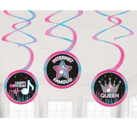 Conjunto de 6 espirais decorativas do Tik Tok, 3 com cartões e 3 sem adorno. Ideal para decorar a tua festa de aniversário.