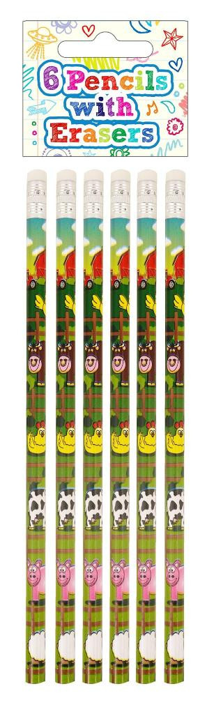 Conjunto de 6 lápis de carvão com borracha, para levar para a escolar ou oferecer como brinde aos teus convidados na tua festa de aniversário temática de animais da quinta.