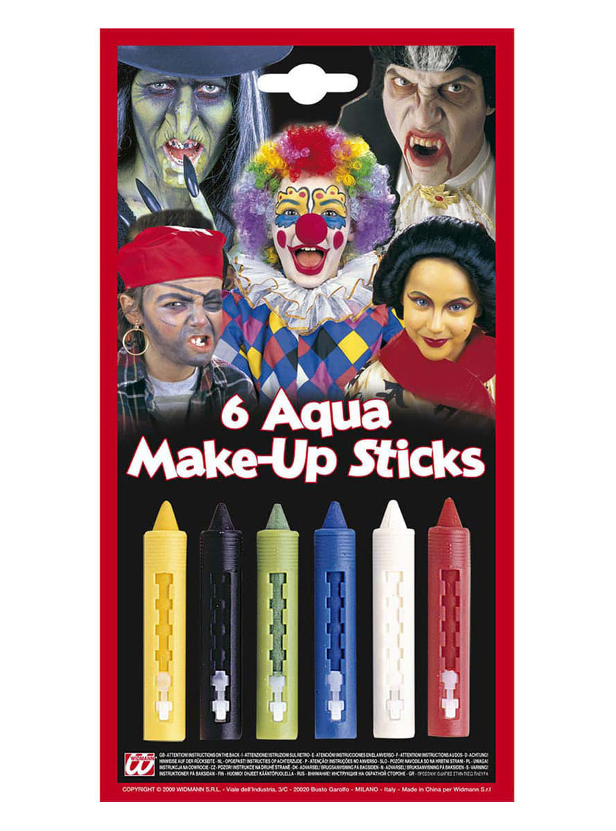 Conjunto de 6 lápis de maquilhagem para pinturas faciais para festa de halloween ou carnaval. Os lápis têm a com tinta à base de água.