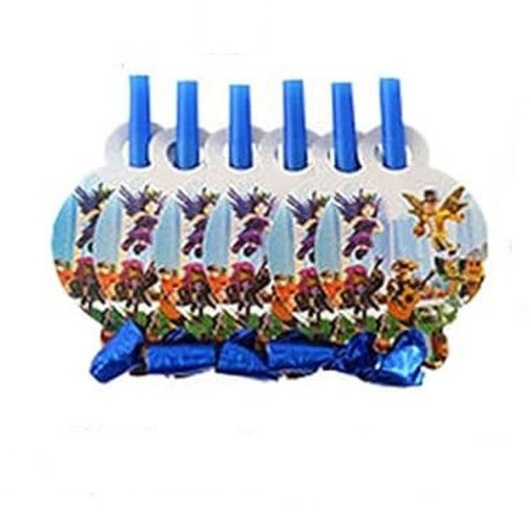 Conjunto de 6 apitos (linguas da sogra) do tema Roblox para festas de aniversário super divertidas.