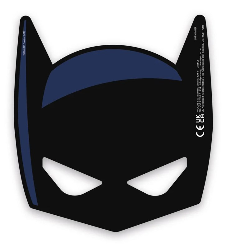 Conjunto de seis máscaras do Batman da DC Comics em cartão com elástico. Ideal para usar em festas de aniversário do tema.