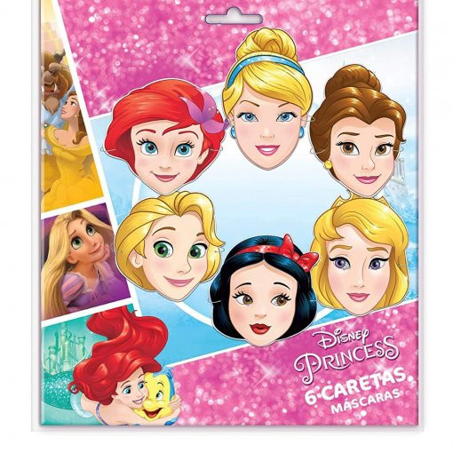 Pack de 6 máscaras das Princesas da Disney para a tua festa de aniversário com o mesmo tema. Escolhe a tua Princesa preferida, a Ariel, Cinderela, Bela, Aurora, Branca de Neve e a Rapunzel.