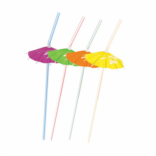 Conjunto de 6 palhinhas em plástico com sombrinhas para decoração de festas havaianas, tropicais e de verão.