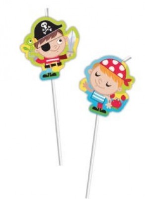 Conjunto de 6 palhinhas decoradas com o tema Piratas, para a tua festa de aniversário