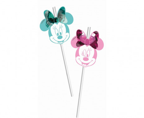 Conjunto de 6 palhinhas flexíveis com imagens da Minnie em rosa e verde da coleção Minnie Party Gem.