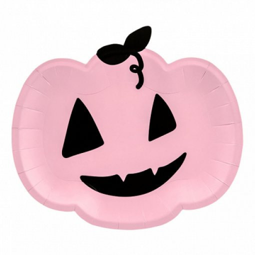 Pack de 6 pratos com o formato de abóbora em cor de rosa claro. Ideal para decorar a tua festa de halloween.