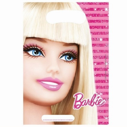 Sacos brinde em plástico para dares no teu aniversário com doces e ofertas na tua festa com o tema da Barbie.