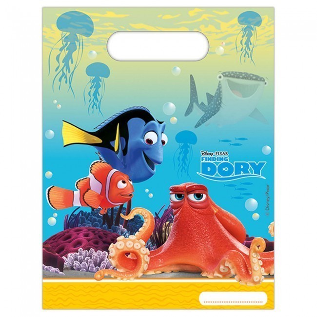 Sacos para ofertas na festa de aniversário dos amigos da Dory, do filme À procura de Dory, para as tuas festas serem ainda mais alegres.
