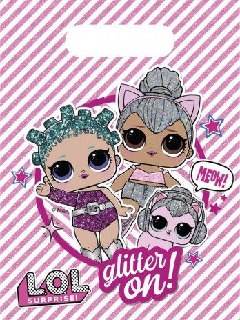 Conjunto de 6 sacos brinde das tuas bonequinhas preferidas, as LOL Surprise, ideal para a entrega de brindes ou doces na tua festa de aniversário.