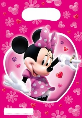 Pack de 6 saquinhos individuais para distribuição de brindes ou guloseimas das festas de aniversário com a adorável Minnie Mouse Disney.