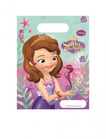 Conjunto de 6 sacos brinde da Princesa Sofia, Sereia, ideal para a entrega de brindes na tua festa de aniversário.