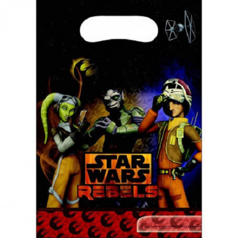 Conjunto de 6 sacos brinde do Star Wars Rebels, ideal para a entrega de brindes ou doces na tua festa de aniversário.