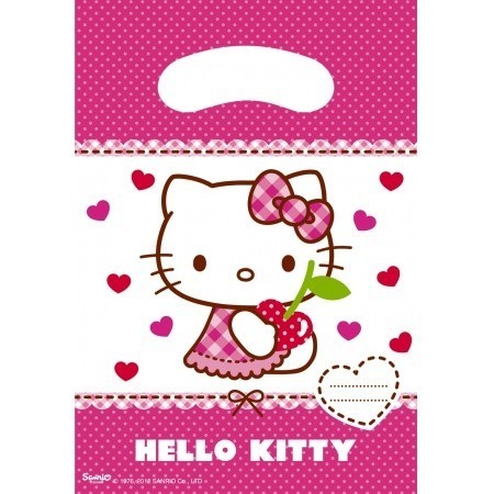 Pack de 6 saquinhos individuais para distribuição de brindes ou guloseimas na tua festa de aniversário Hello Kitty.
